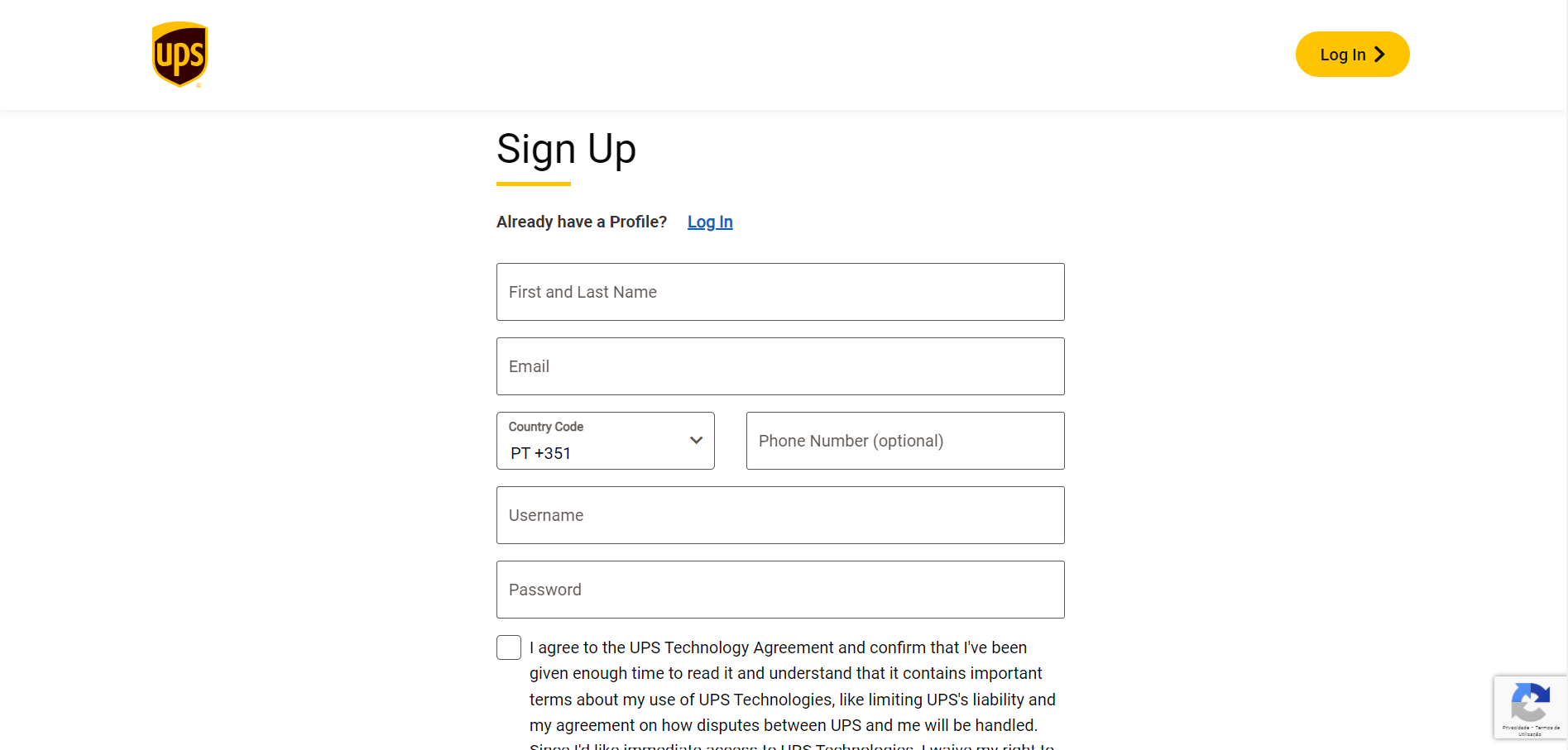 Nota: Si ya dispone de una cuenta UPS, le recomendamos que cree una nueva para asegurarse de que los pasos de configuración se realizan correctamente.